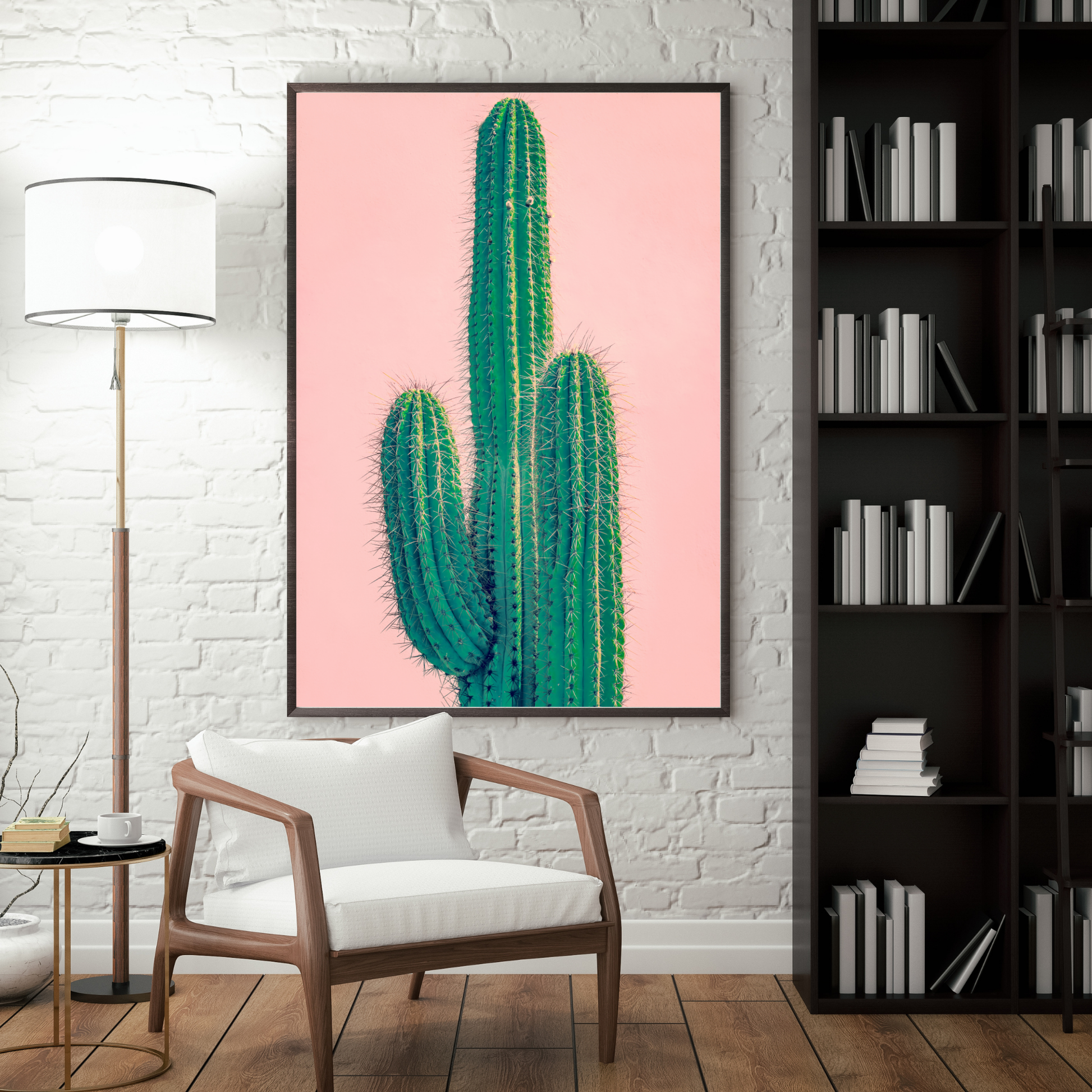 A Little Prick is a bold and modern artwork featuring a large cactus on a background of baby pink. The perfect focal point for your home. Available in 3 sizes.