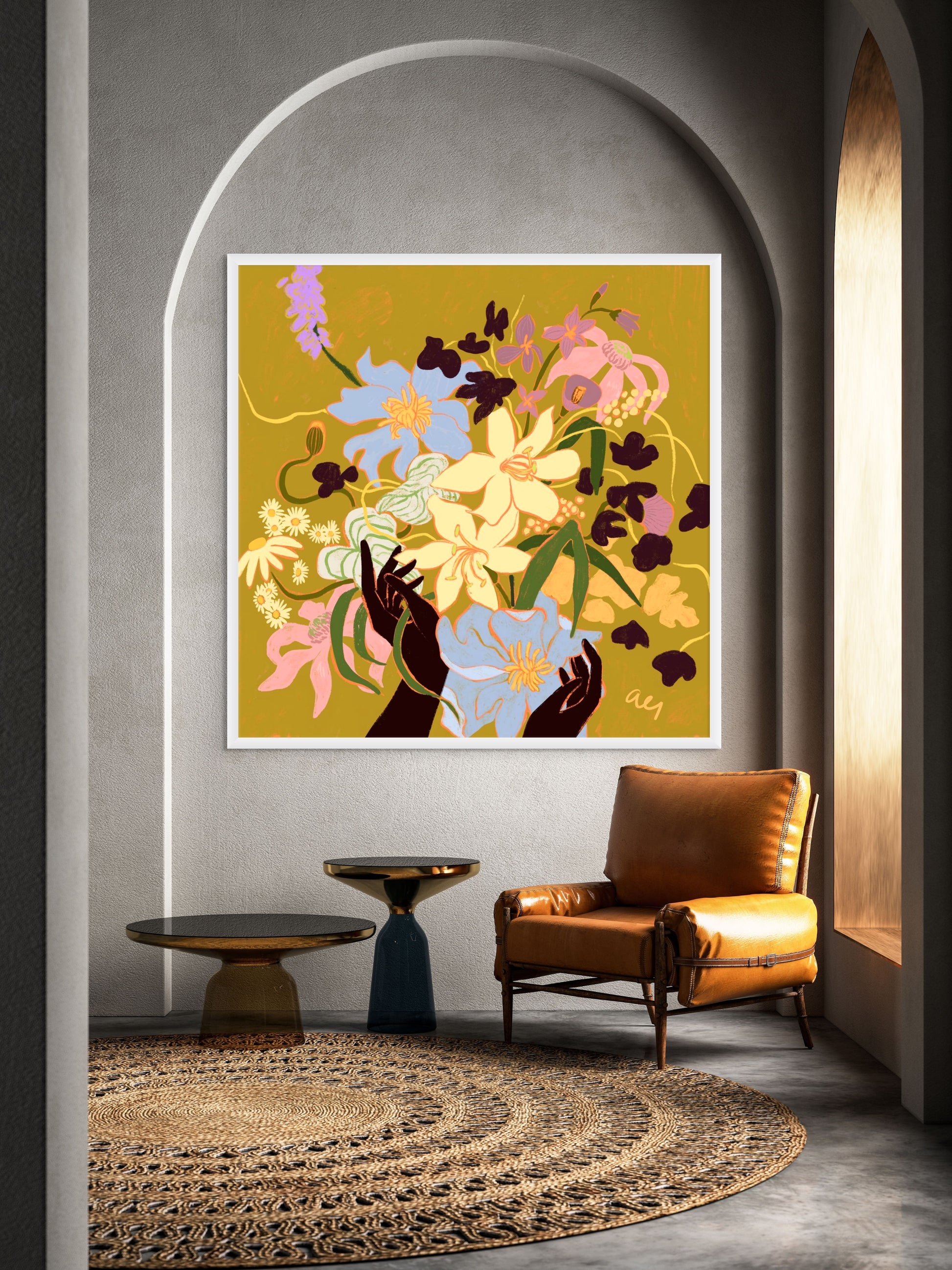 Indicative images only: Please note that print and framing previews are not to scale. The images above are an indication only. The scale and proportions differ between print sizes or original artwork sizes, as the framing has a consistant profile size and is not increased or decreased based on print or original artwork canvas size.