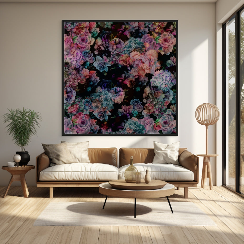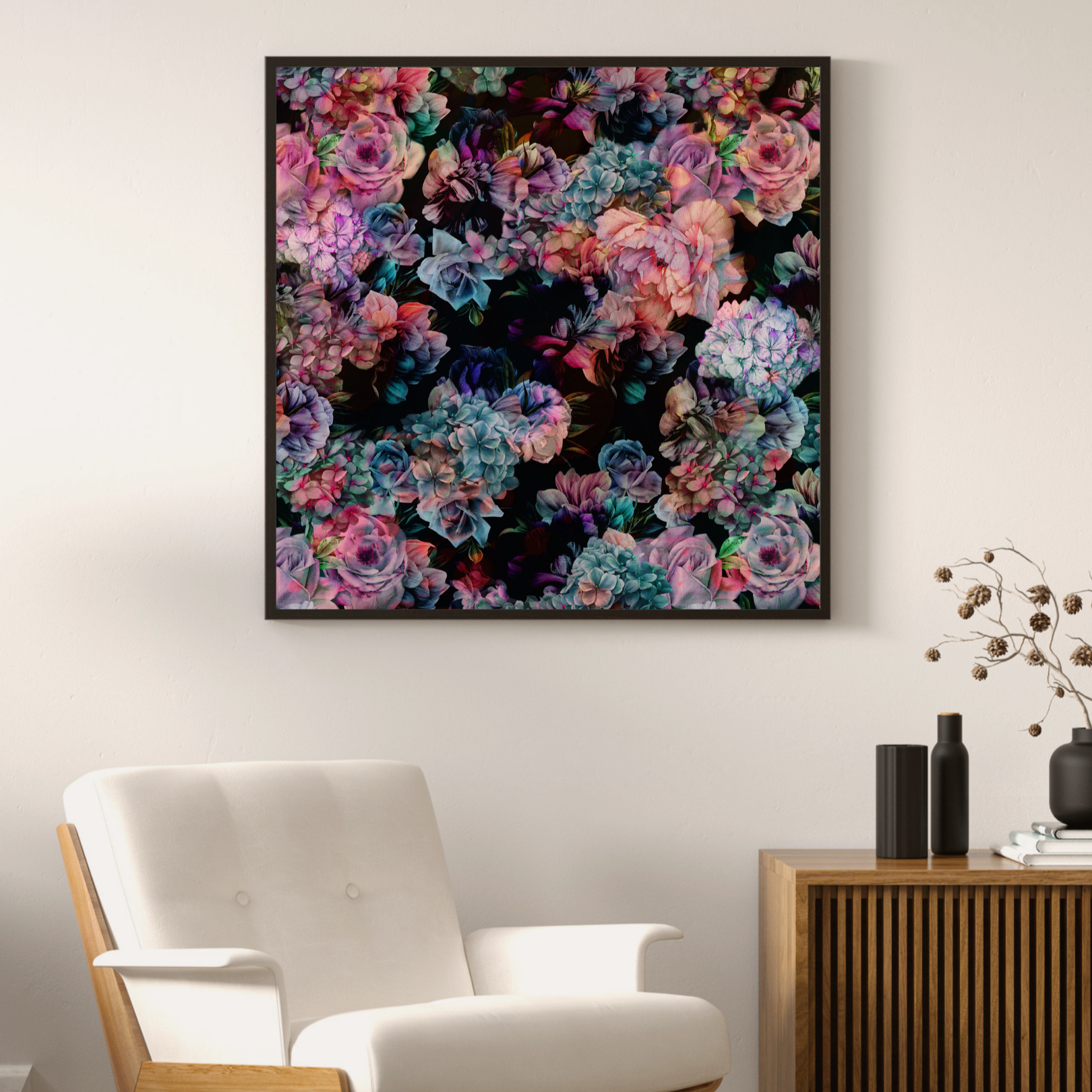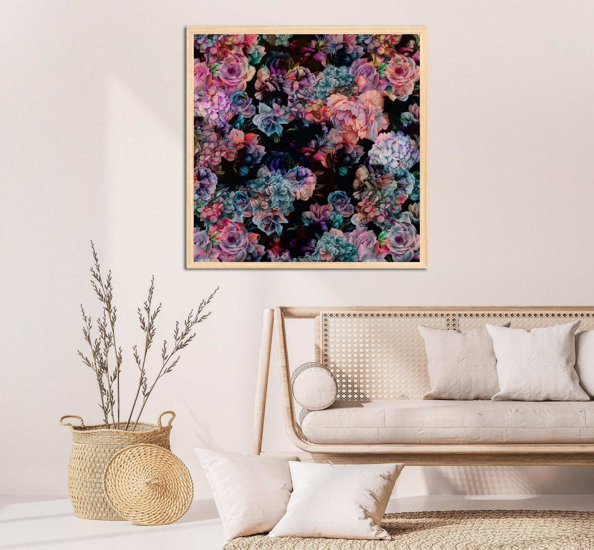 Acid Floral is a contemporary floral artwork, in shades of pink, purple, and blue. Available in 3 sizes.