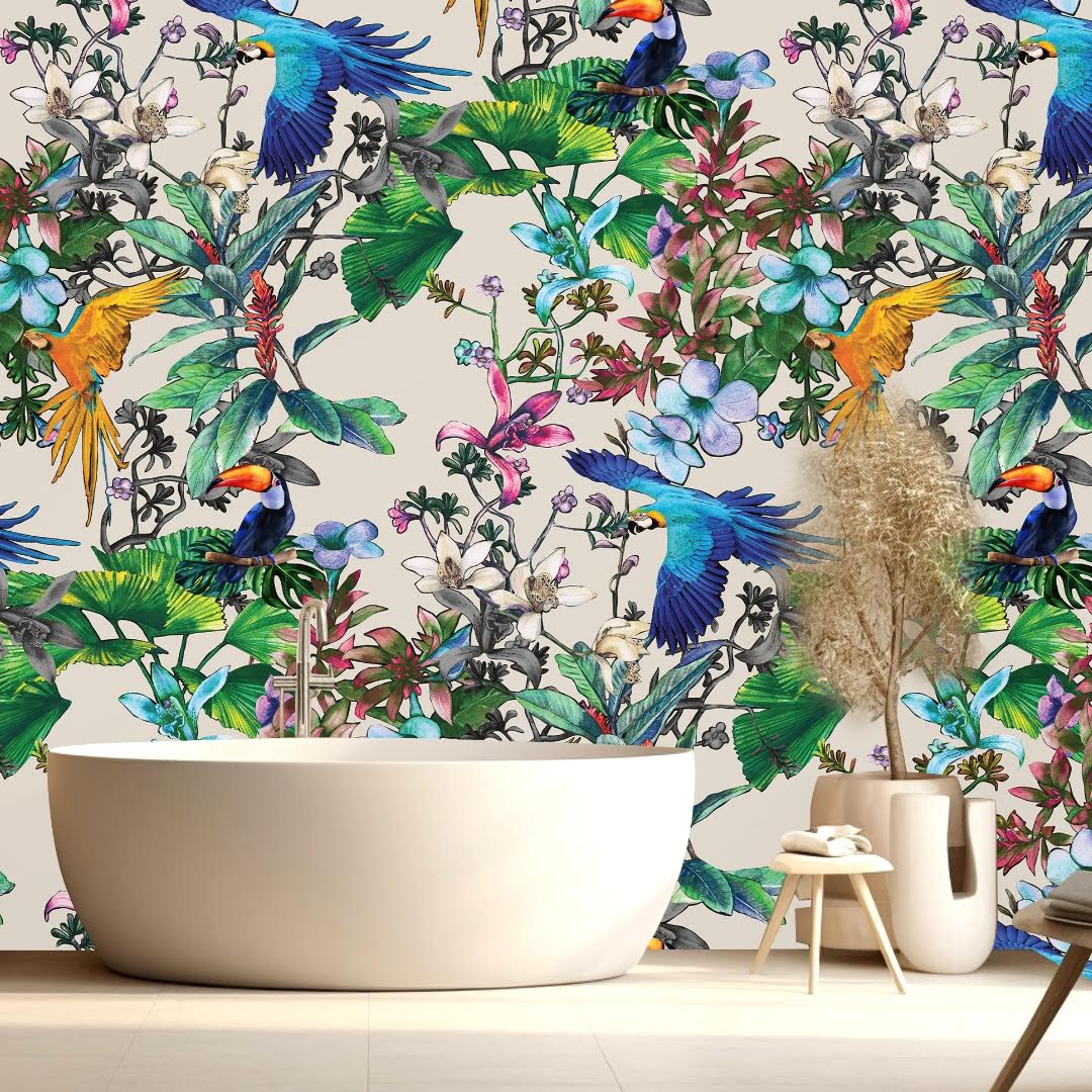Birds of Paradise (neutral) Removable Bathroom Wallpaper