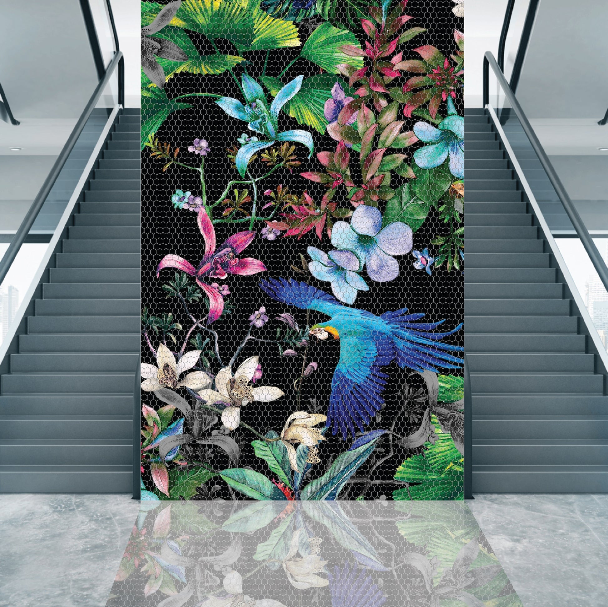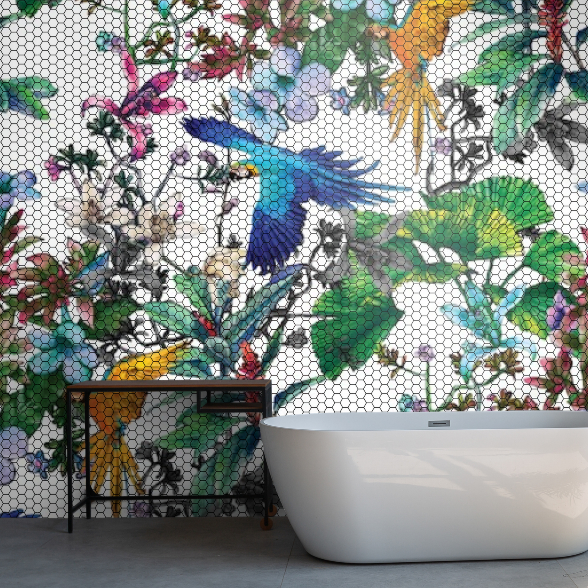 All our custom-printed tiles are available as mosaic, penny-round, or square tiles.