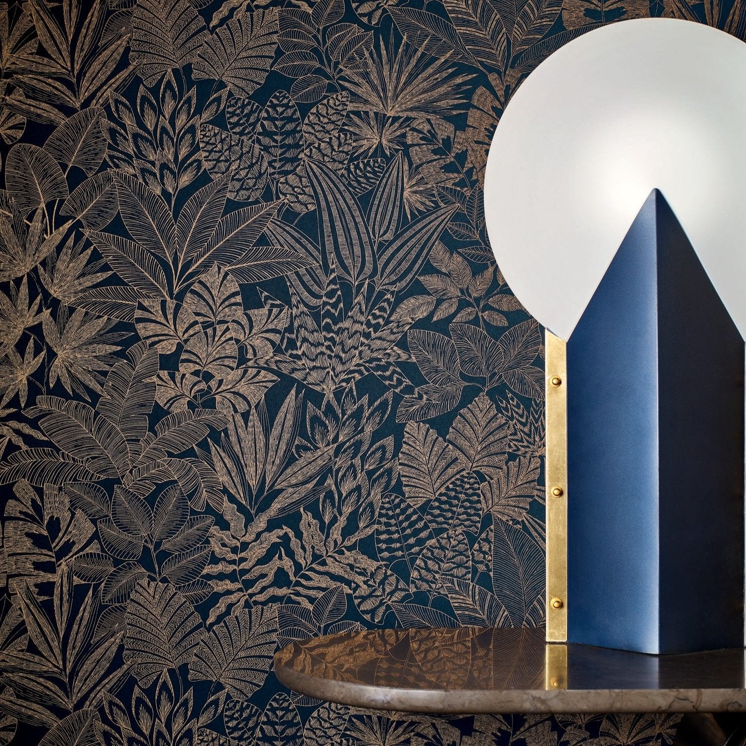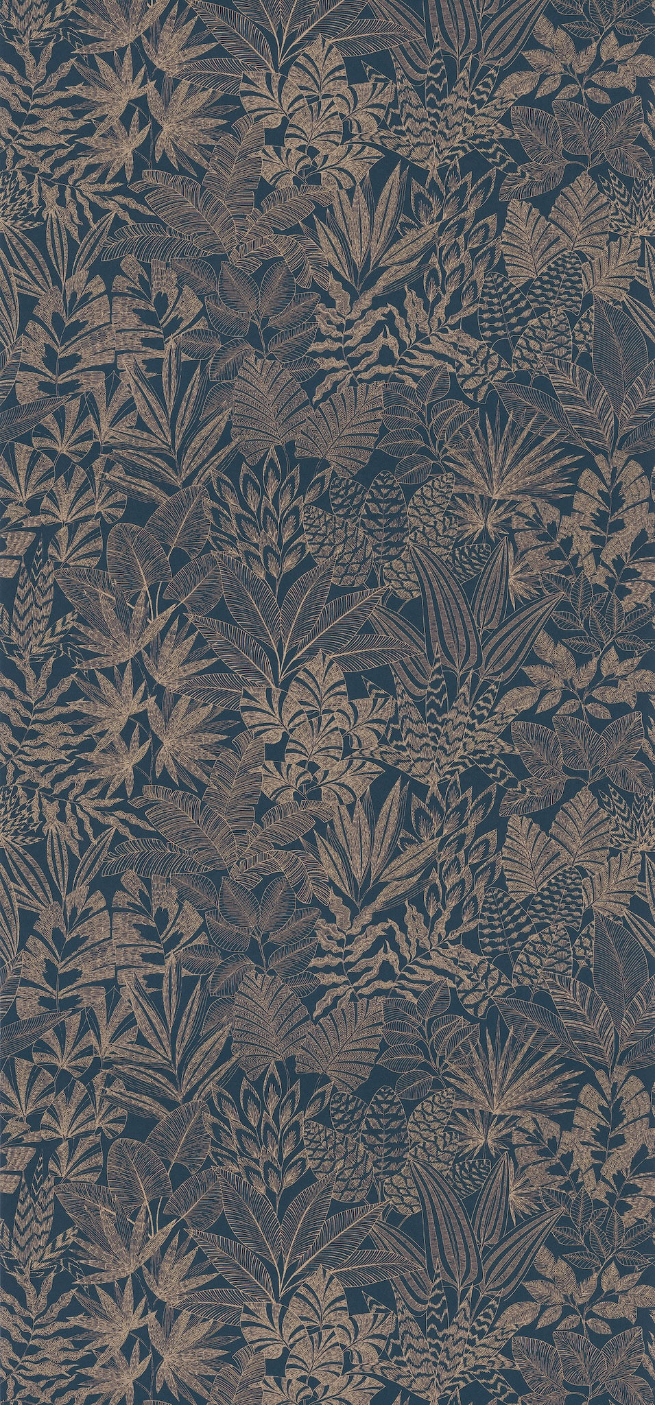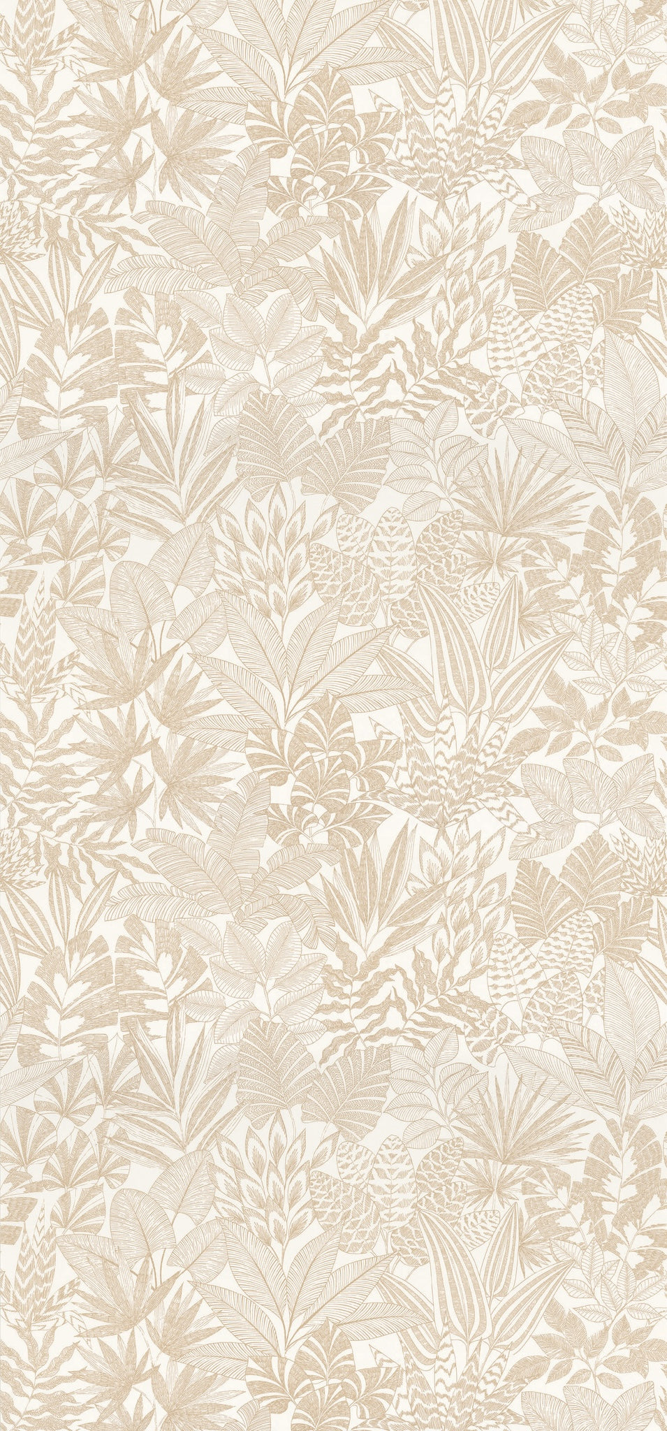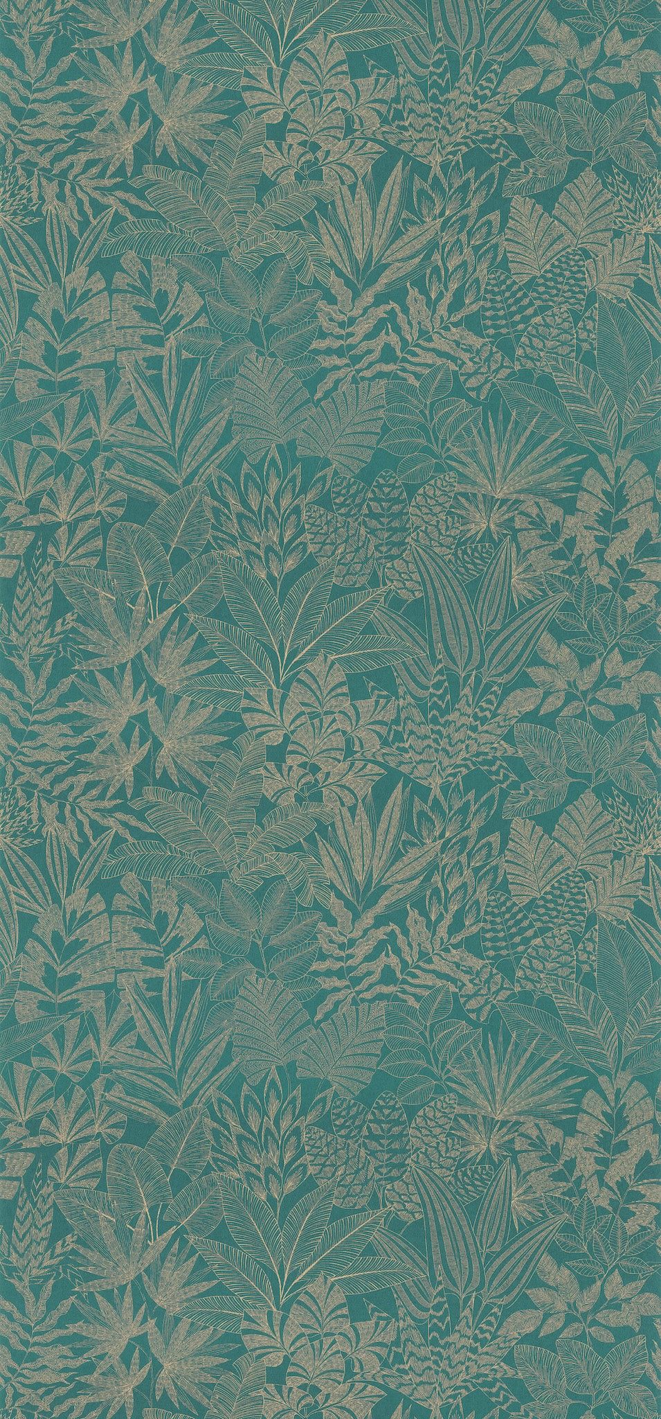 Originating in Northern Africa, the Doum palm gives its name to this design that represents many plant species. The whole surface of the paper is printed using the “all over” technique. DOUM is designed to catch the light. The fine lines of metallic ink give the foliage a subtle shine and highlight their delicate veining.