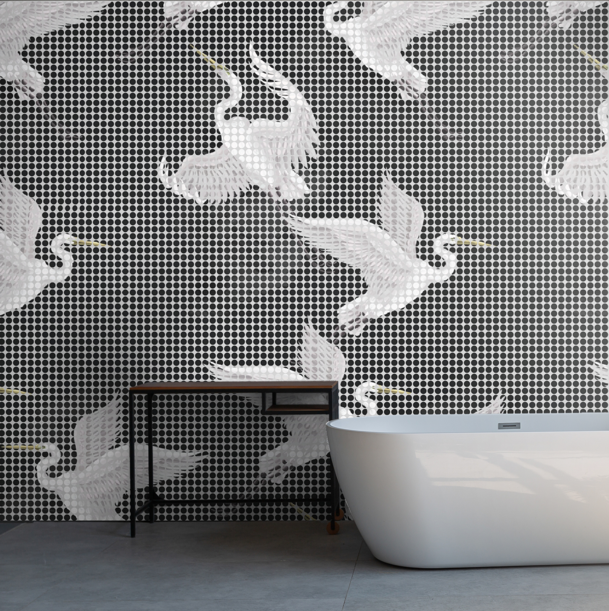 All our custom-printed tiles are available as mosaic, penny-round, or square tiles.