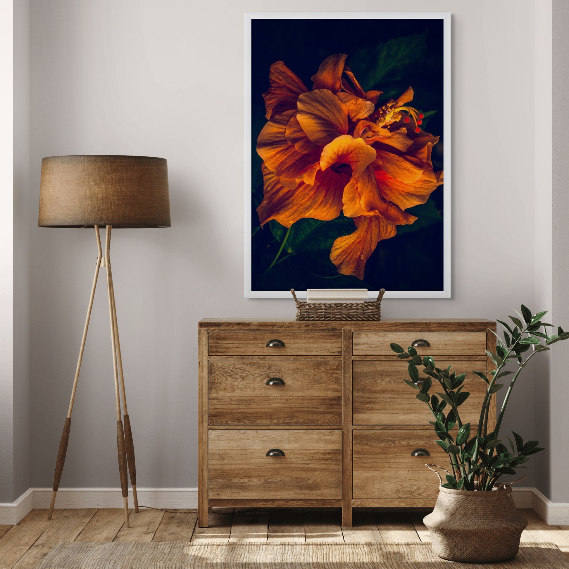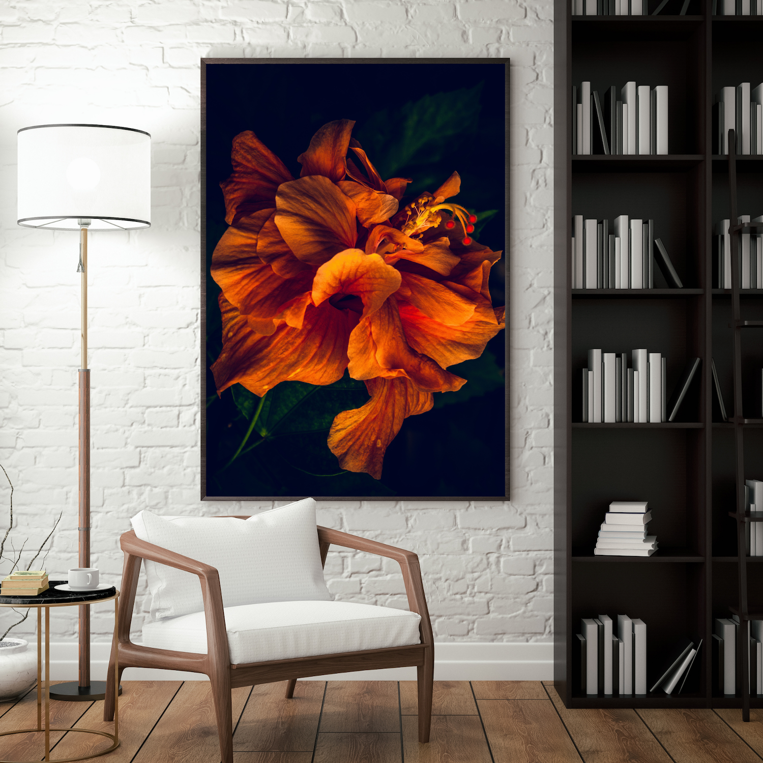 Fiesta is a vibrant, floral artwork in shades of red and orange, making a dramatic pop of colour in your home. Available in 3 sizes.