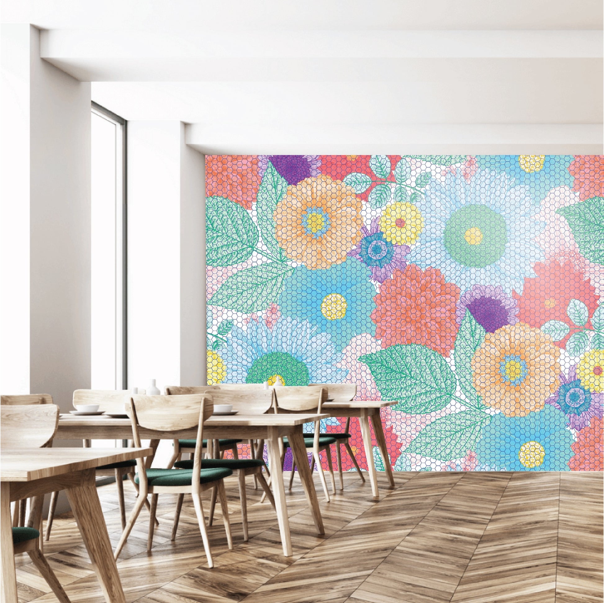 All our custom-printed tiles are available as mosaic, penny-round, or square tiles.