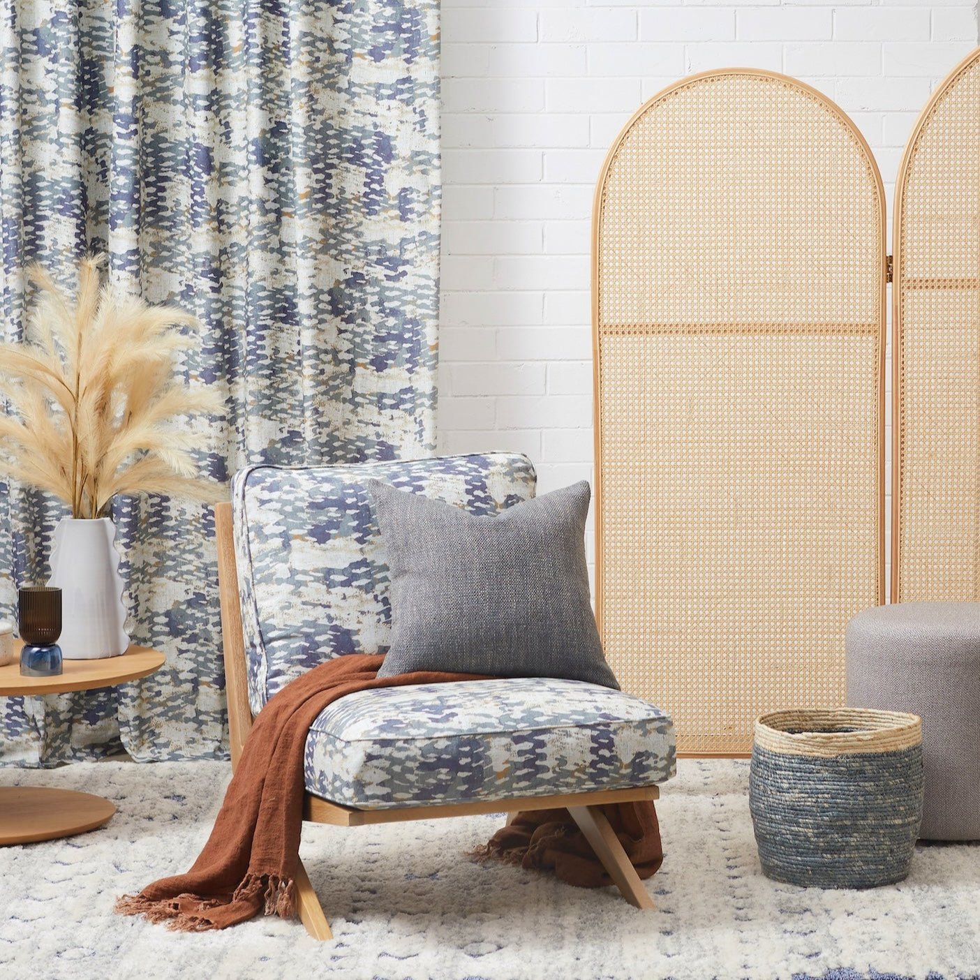 Named after and inspired by trailing water channels in nature, Flume is our newest painterly watercolour print celebrating organic watery line work, and collisions of beautiful colour. This graphic yet textural pattern pairs seamlessly with chunky plains like the Zepel Weave design that combines optimal visual impact while maintaining an earthy, restful appeal.