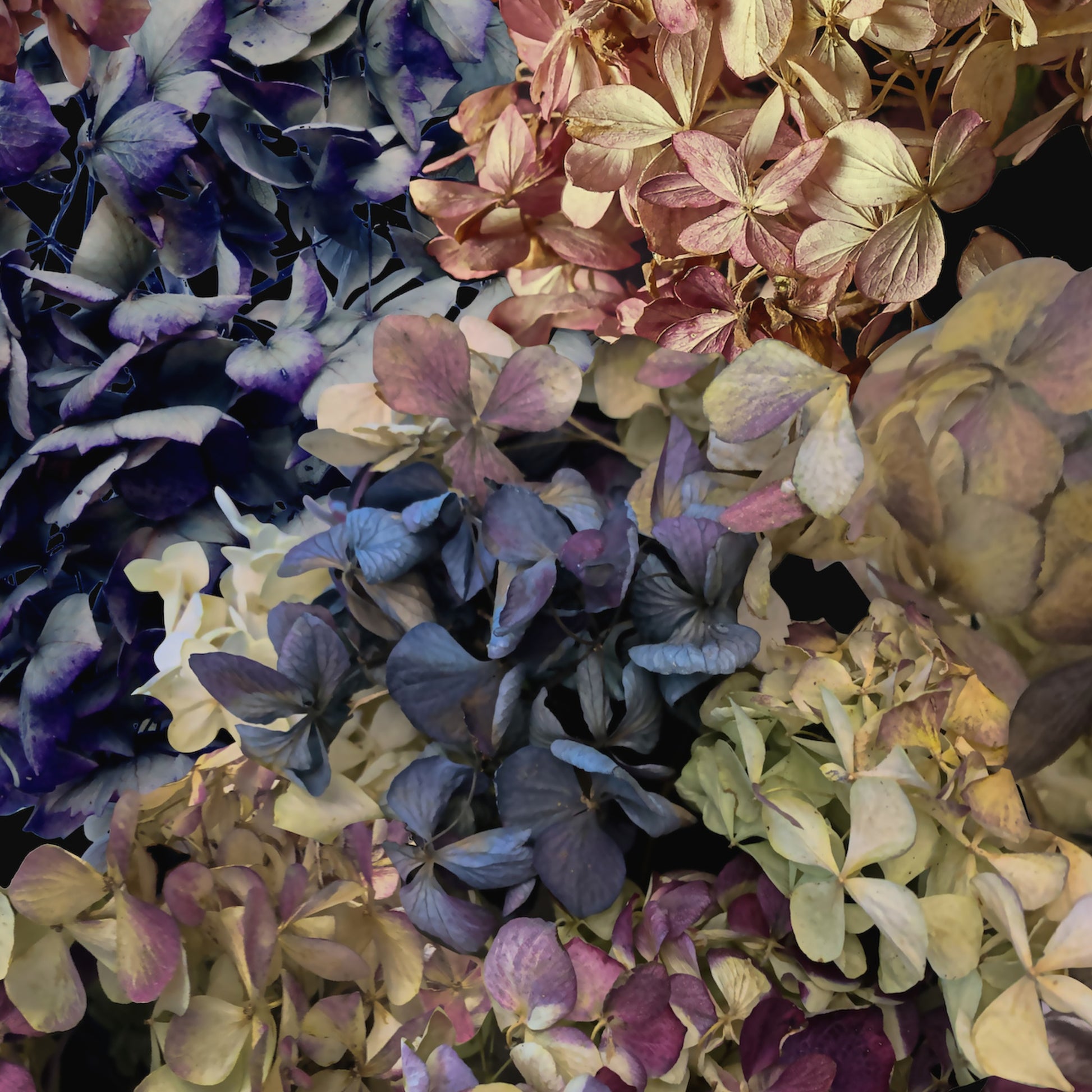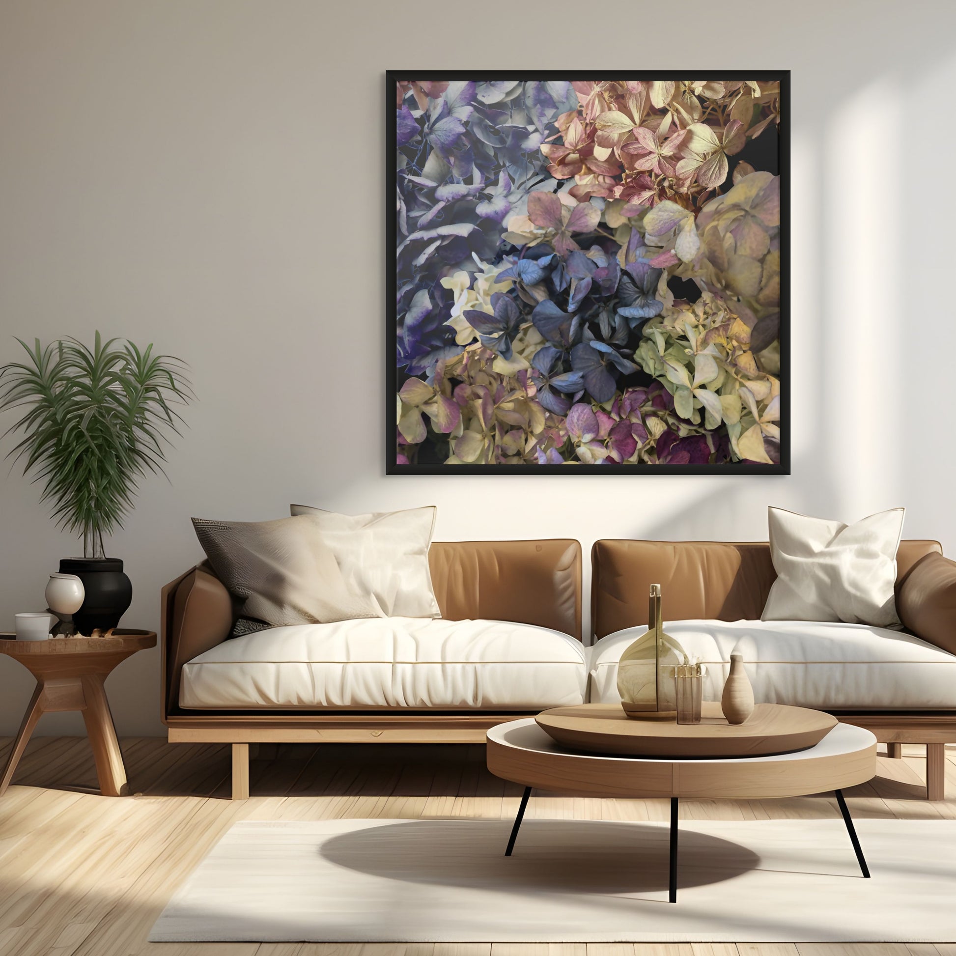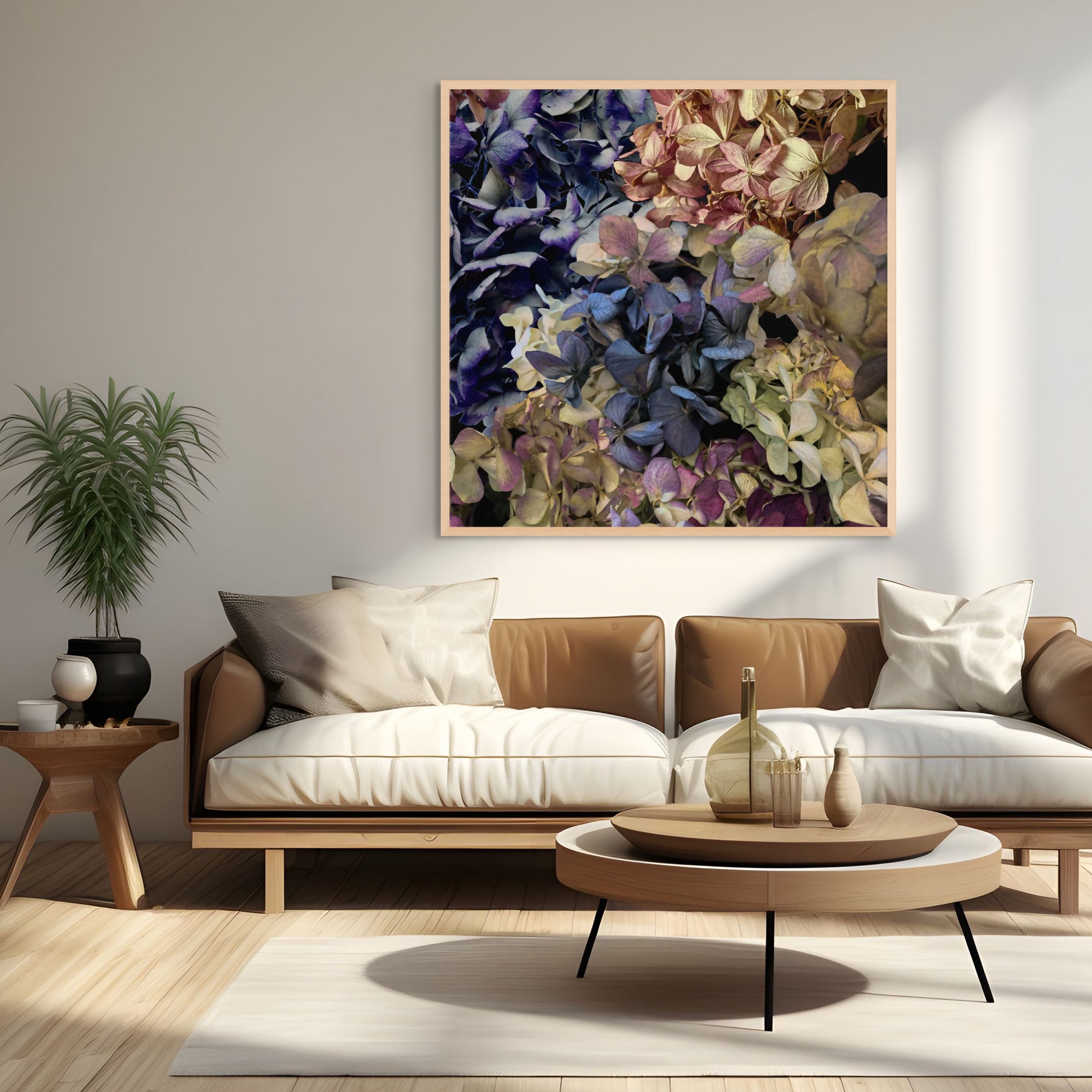 Heavenly Hydrangeas is a moody, bold, and large-scale floral design available in 3 sizes. Sold as print only or framed.