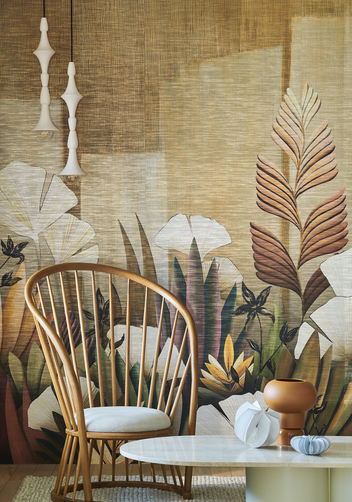 Composition: Vegetal wallpanel printed on paper on non-woven