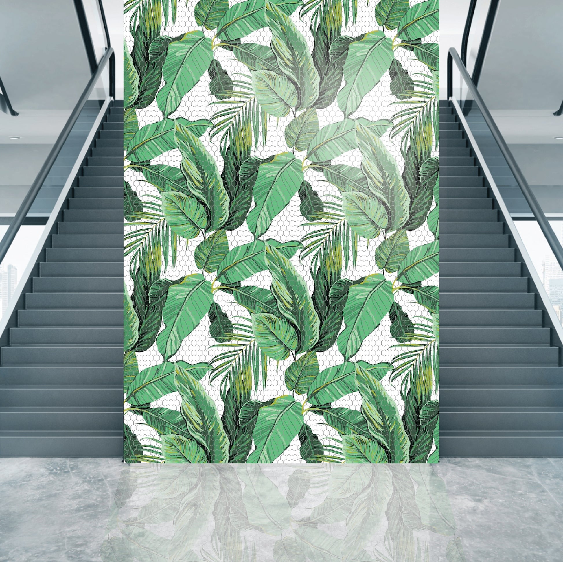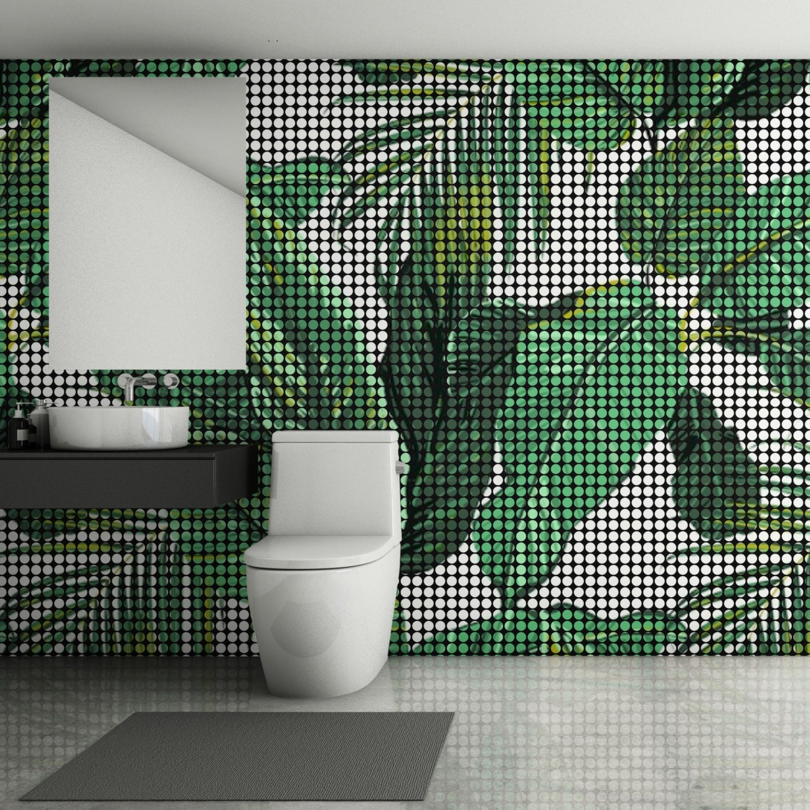 All our custom-printed tiles are available as mosaic, penny-round, or square tiles.