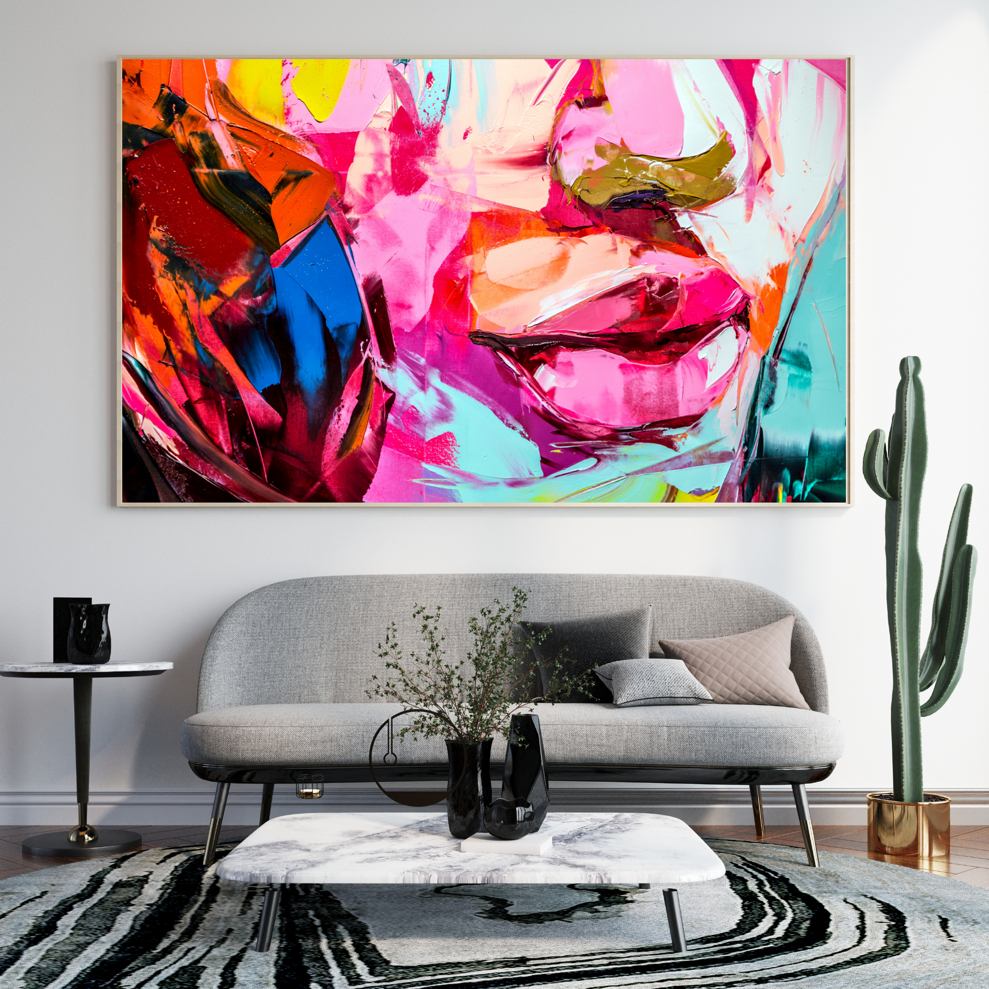Lip Service is a beautifully bold, abstract art showcasing a woman's face in profile. The perfect focal point for your home. Available in 3 sizes.