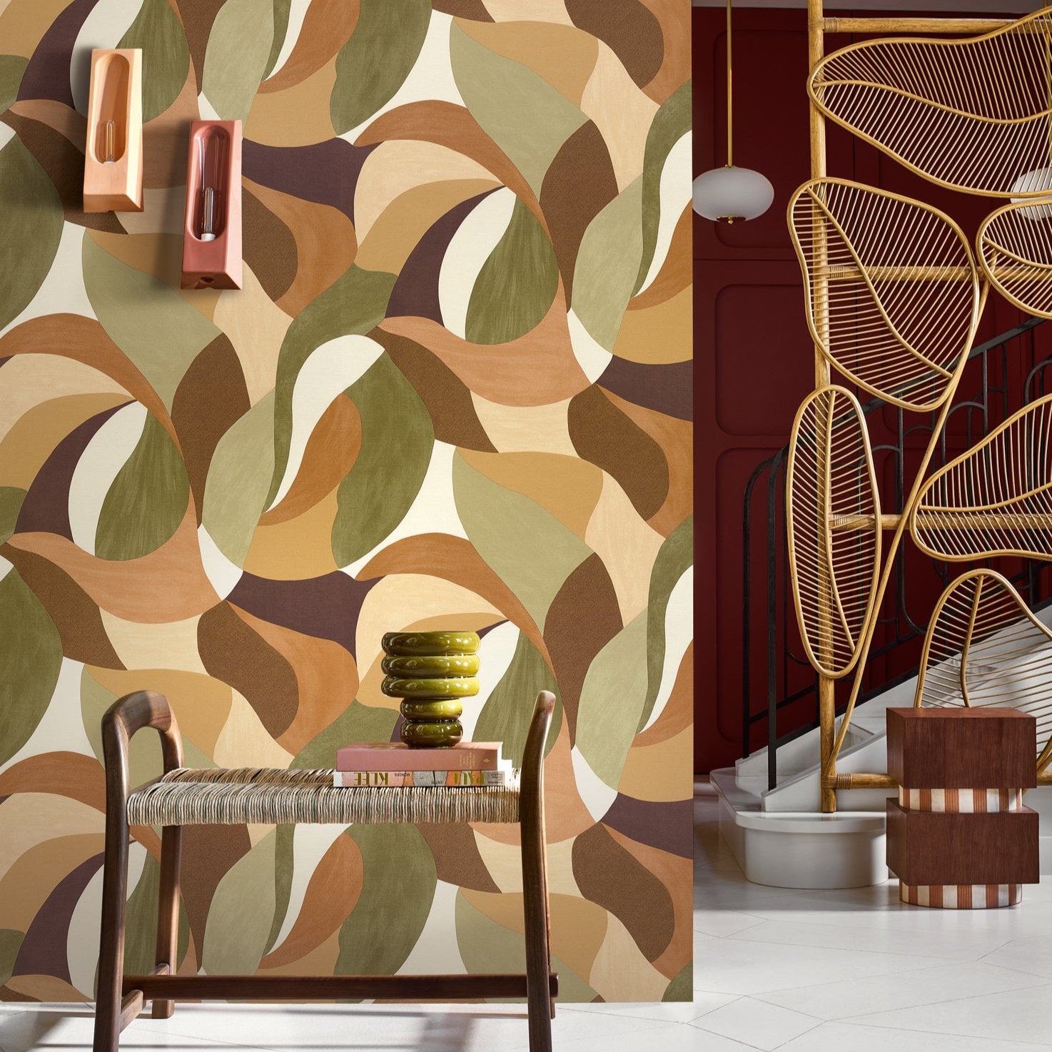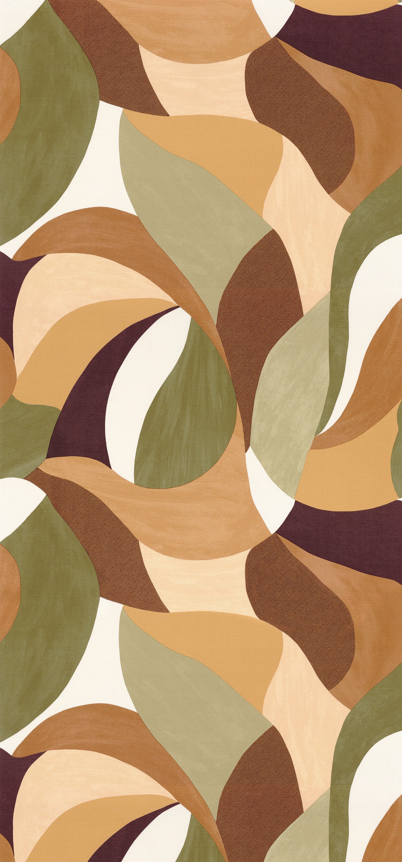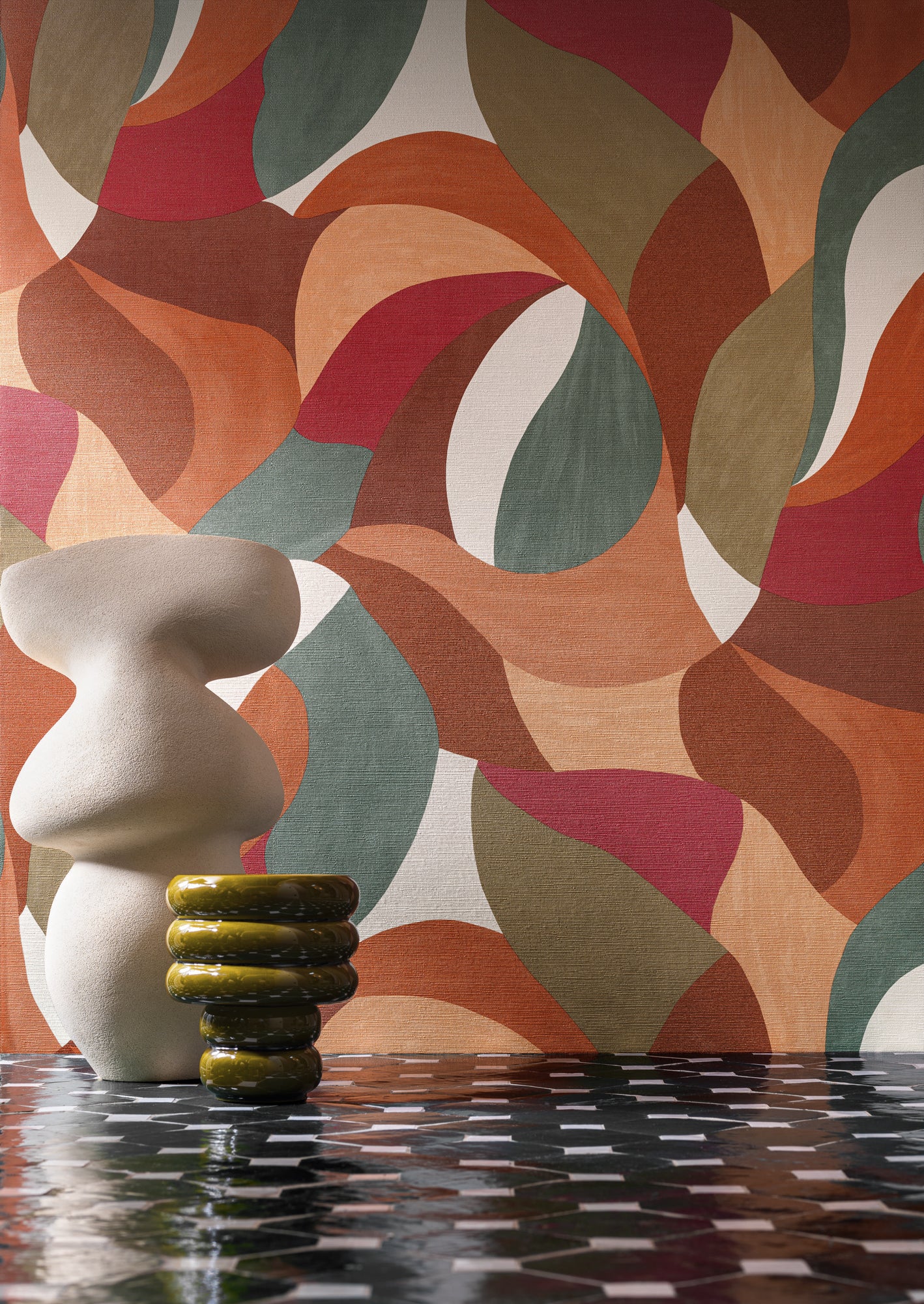 The almond is the first fruit tree to blossom in spring. Once the flowers have appeared, they give way to spear-shaped leaves in luminous shades. MANDORLA captures this special moment, when the orchards of almond trees are transformed into the colors of the south of France. Created using textures from fabrics and paintings, this large-scale design suggests intertwining leaves. The textile grain accentuates the many material effects within the shapes. The palette is created using seven printing cylinders, recreating the warm shades of Provence and the softness of neutral tones.