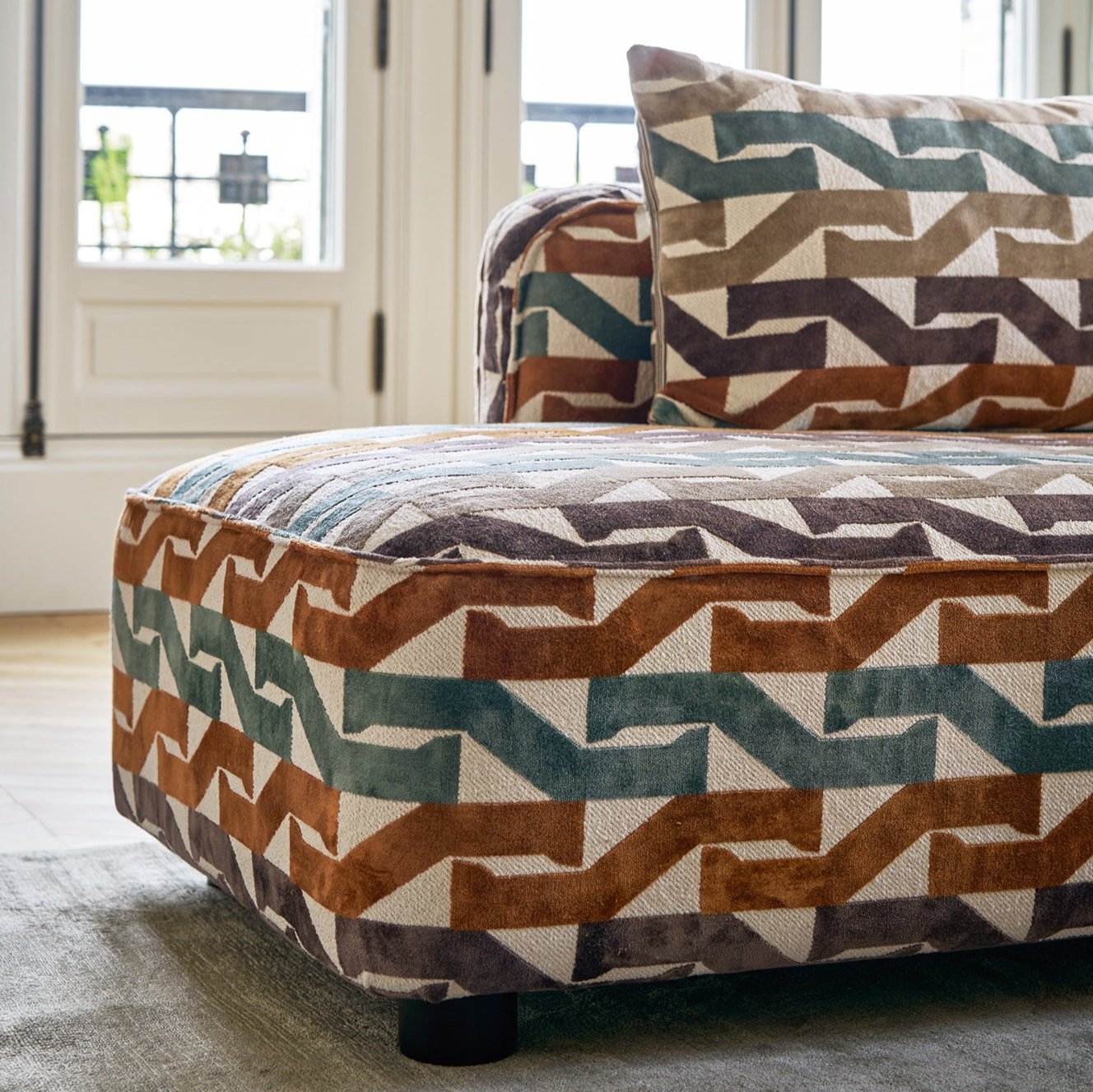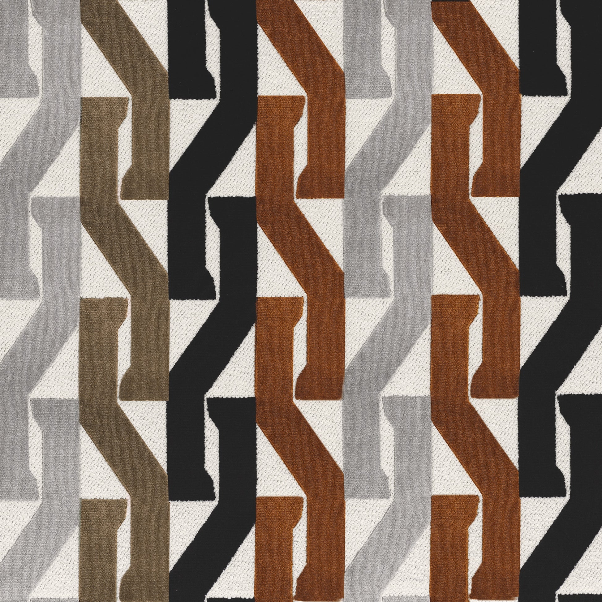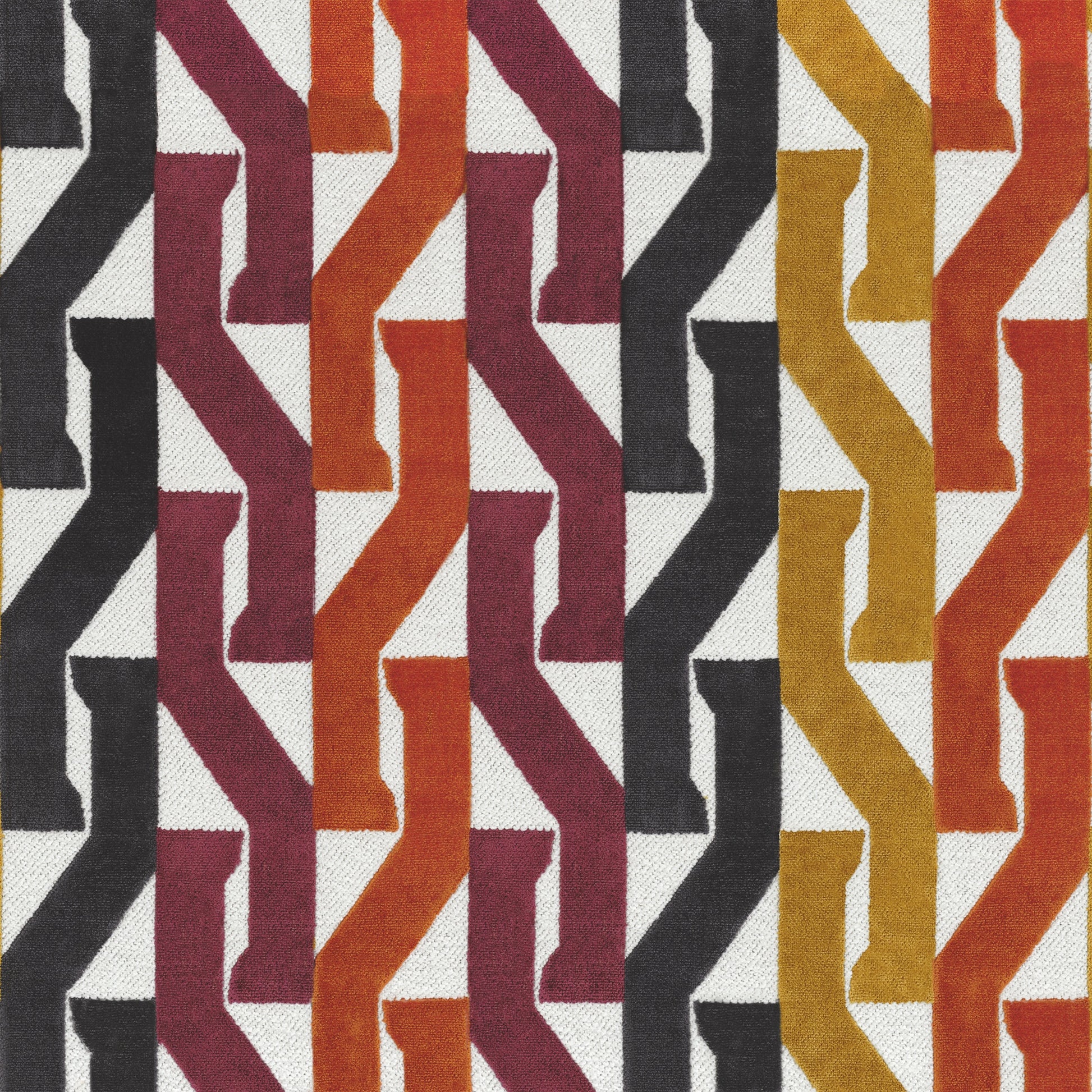 Dancing to a steady rhythm, Monogramme features an ebullient pattern. Vertical striations and bands of colour sing to a lively tempo and spark energy in this Jacquard design. The soft velvet nestles into knotted twill details, creating an entrancing combination of textural comfort and visual stimulation. Using a highly durable textile, Monogramme makes a statement that playful upholstery is the moment.