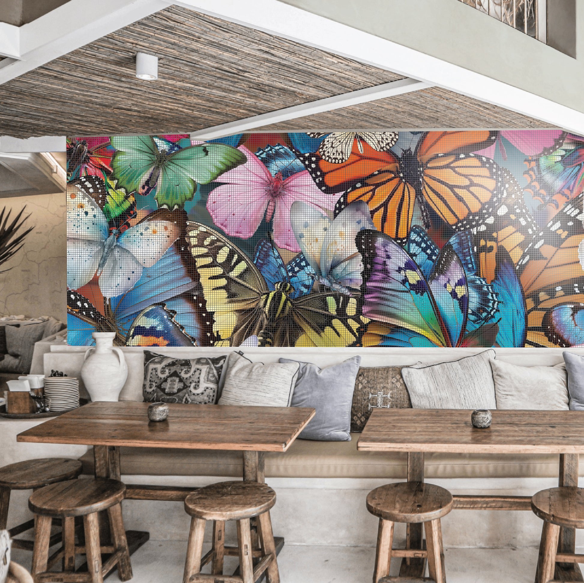 All our custom-printed tiles are available as mosaic, penny-round, or square tiles.