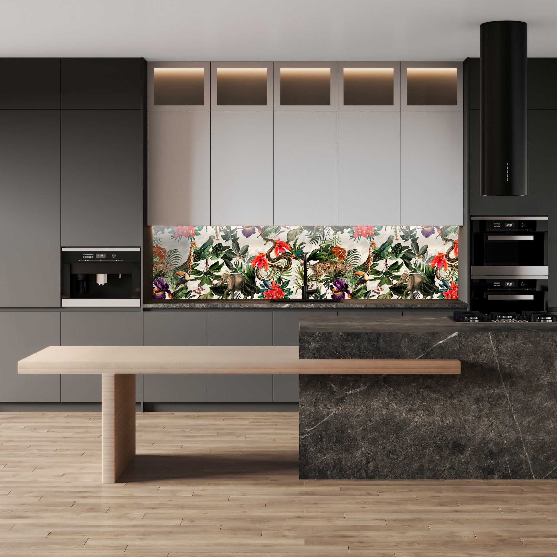 We offer all of our wallpaper designs as files to be used as kitchen splashbacks.